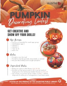 Winners will be announced on VPL’s social media & displayed at the Halloween Kiddie Parade on Oct. 31 Any entries not picked up by 5:00pm on Nov. 1 will be disposed of unless prior arrangements have been made